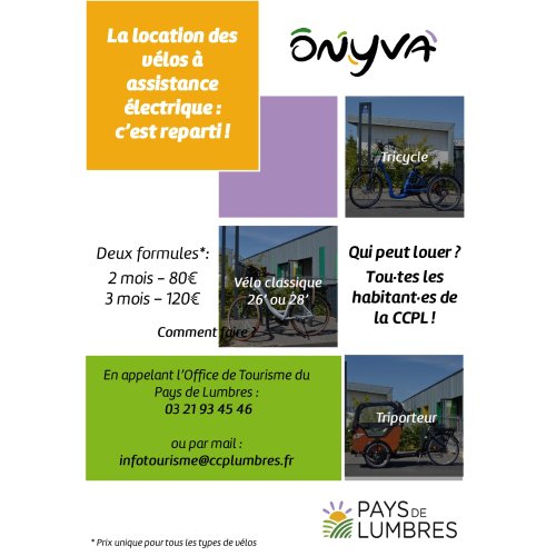 La Communauté De Communes Du Pays de Lumbres propose des vélos à assistance électrique à la location durant la période estivale.