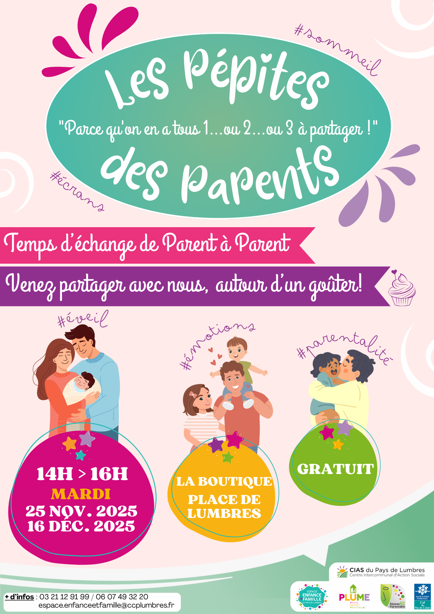 Infos au 03.21.12.91.99 ou au 06.07.49.32.20 ou par mail à espace.enfanceetfamille@ccplumbres.fr